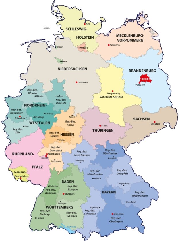 Oberbayern: Altötting, Bad Tölz, Berchtesgaden, Dachau, Ebersberg, Eichstätt, Erding, Freising, Fürstenfeldbruck, Garmisch-Partenkirchen, Ingolstadt, Landsberg, Miesbach, Mühldorf, München, Neuburg, Schongau, Schrobenhausen, Pfaffenhofen, Rosenheim, Starnberg, Traunstein, Weilheim, Wolfratshausen, Schwaben: Aichach, Augsburg, Dillingen, Donau-Ries, Friedberg, Günzburg, Kaufbeuren, Kempten, Lindau, Memmingen, Neu-Ulm, Oberallgäu, Ostallgäu, Unterallgäu, Niederbayern: Deggendorf, Dingolfing, Landau, Freyung, Grafenau, Kelheim, Landshut, Passau, Regen, Bogen, Rottal, Straubing, Oberpfalz: Amberg, Cham, Neumarkt, Neustadt, Regensburg, Schwandorf, Sulzbach, Tirschenreuth, Weiden und in vielen anderen mehr.